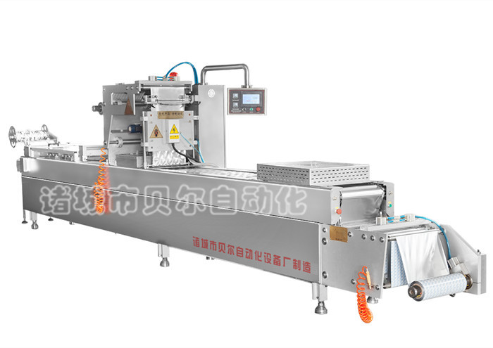 1、控制系統先進 該系列包裝機采用德國西門子觸摸屏、PLC及步進控制系統,配用 原裝德國普旭真空泵。整機通過人機界面智能調節方便,步進精度 高,各動作協調一致,自動化程度高。 2、功能齊全 (1)可以在同一臺設備上選用彩膜或光膜覆膜形式; (2)可以根據用戶產品包裝要求配備自動打碼/噴碼系統; (3)根據用戶產品包裝要求在抽真空的基礎上,可以充N2、02、 CO2 混合氣體或單一氣體,氣體混合比例可以通過氣調控制器方便 調節; (4)設備配備斷相保護系統,漏電保護系統,相序保護系統,避 免因停電,漏電以及人工操作失誤而造成的設備損壞,同時保障操 作人員人身安全; (5)設備配置上下模自動糾偏系統,通過電腦自動感應覆膜與底 膜精準走向,及時調整覆膜材料在生產過程中出現的纏繞端面不平 問題,使產品包裝外觀更加完美,同時避免膜材浪費。 四、主要技術參數